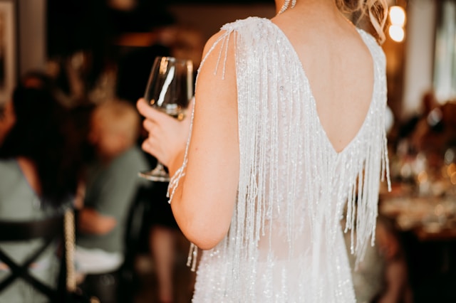 肩や背中が開いたデザインのドレスでも、昼間は上にボレロやジャケットを羽織れば大丈夫です。また長袖や七分袖で袖の部分のみシアー素材になったドレスなら、露出を抑えつつ華やかさを演出できます。