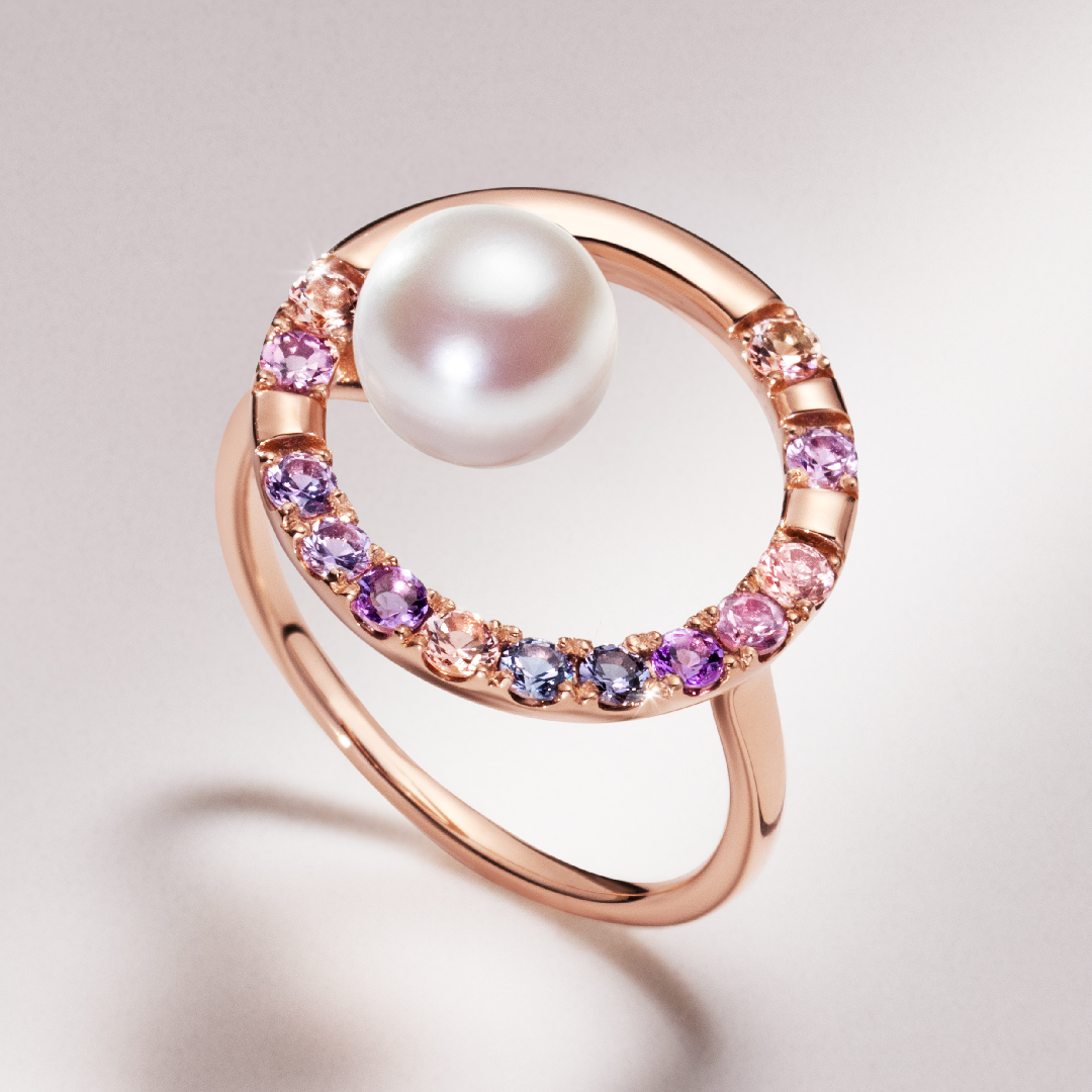 - [紫の上 着想]あこや真珠×マルチカラージュエル K18リング・パルファシオン