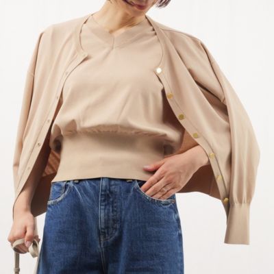 半袖や長袖のクルーネックニットとカーディガンがセットになったアンサンブルは、デニムからフレアスカートまで色々なボトムスと合わせやすく、お出かけにも仕事にも使えて便利。