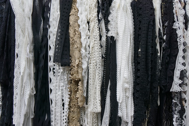 一方、大量生産が可能な「ラッセルレース」「エンブロイダリーレース」「トーションレース」などは丈夫で比較的安価なため、一般的な服地や子供服、カーテンまで日常のさまざまな場所に溶け込んでいます。